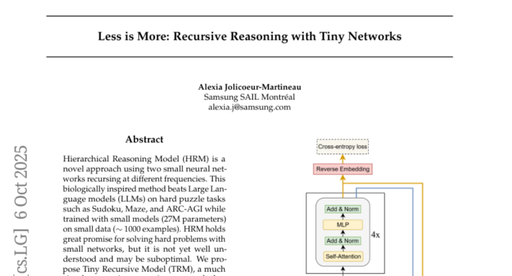 这项由三星AI实验室蒙特利尔分部的Alexia Jolicoeur-Martineau博士领导的研究发表于2025年10月,论文编号为arXiv:2510.04871v1。该研究提出了一种名为"小型递归模型"(Tiny Recursive Model,简称TRM)的新方法,仅用700万参数就在多项复杂推理任务上超越了拥有数千亿参数的大型语言模型。